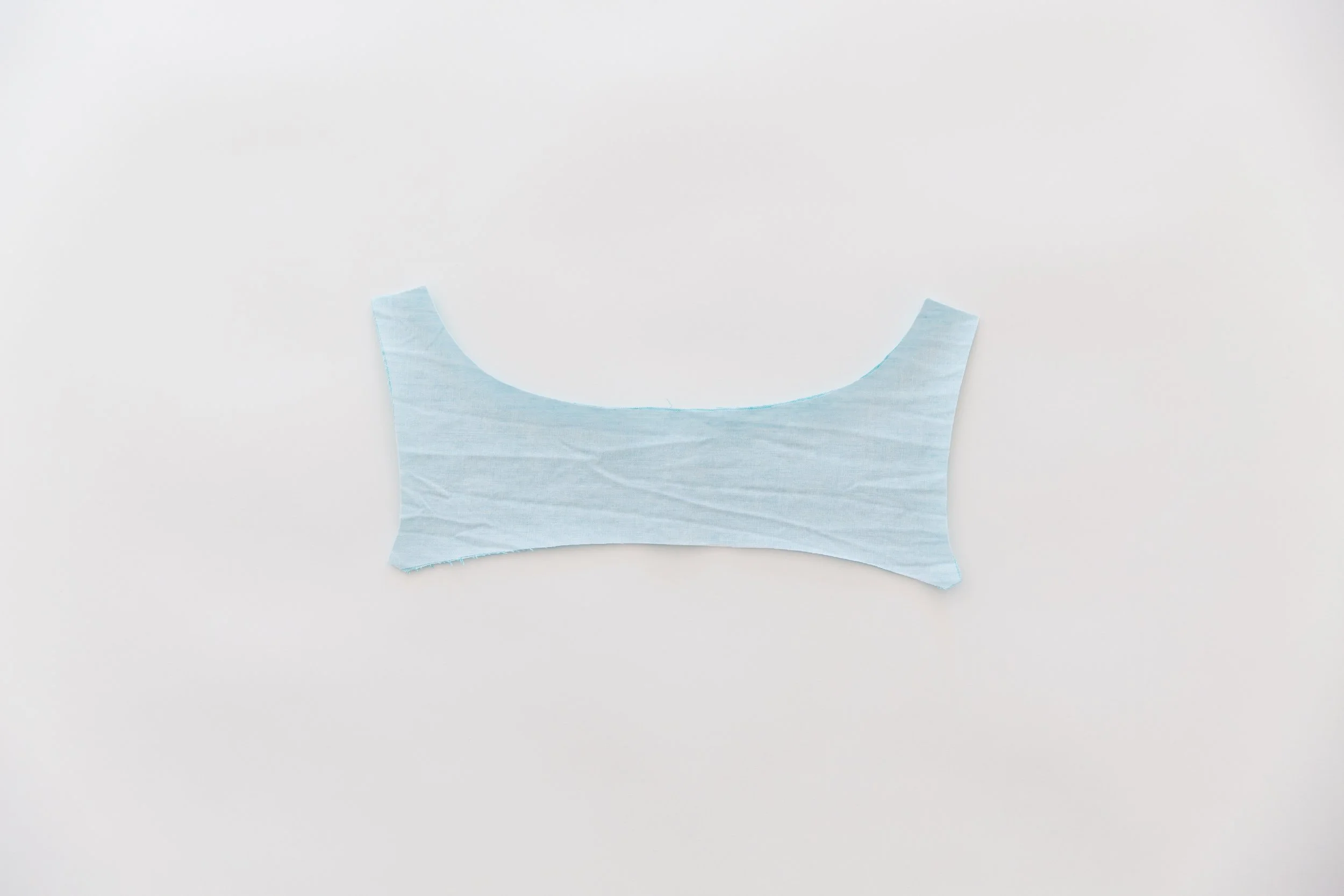 With right sides facing, pin neck facing piece to neckline. Stitch together. Trim seam allowance in half and clip around curves. Understitch seam allowance toward facing. Press.